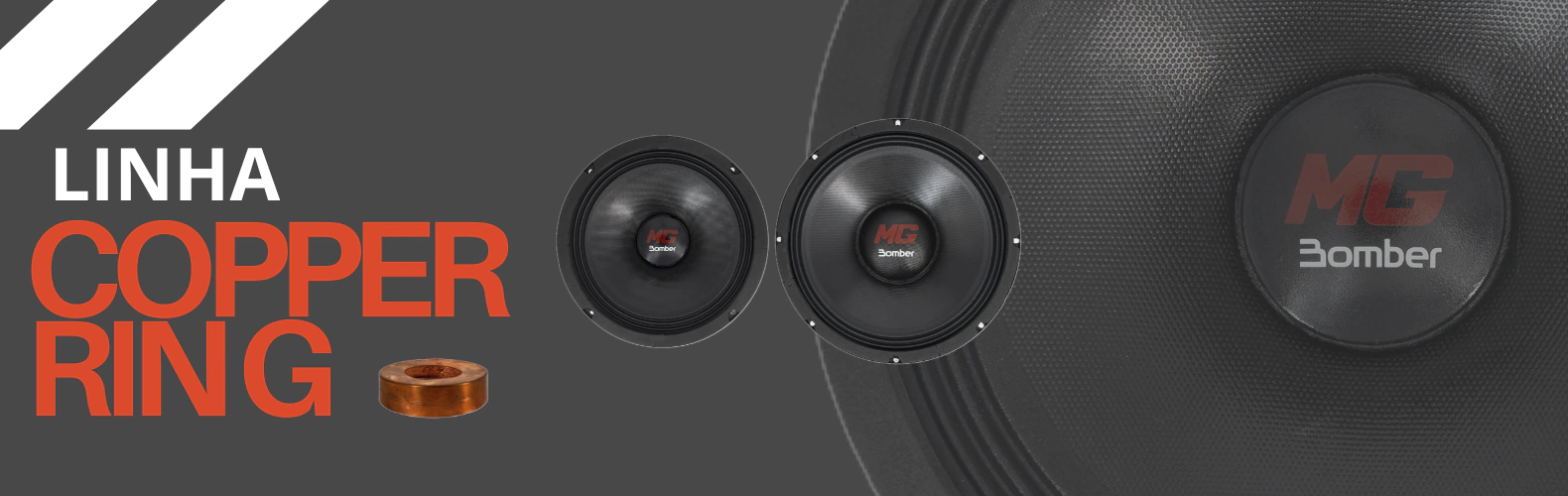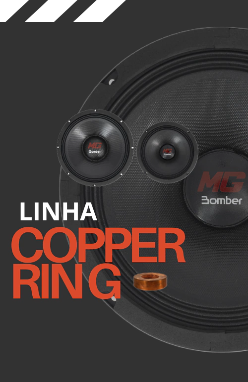 Este super projeto possui: short ring, aranha dupla em polycotton, cone de celulose com fibra de vidro, bobina em kapton com enrolamento in e out em CCAW, conjunto magnético com 4 ferrites de bário (2 externos) e carcaça injetada em alumínio de alta resistência.