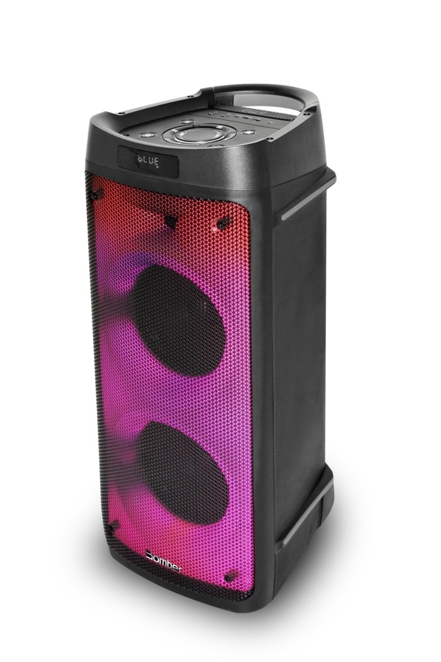 Possui também entrada de microfone e tecnologia TWS que possibilita dobrar sua experiência sonora, sendo possível conectar a mais uma caixa de mesmo modelo, alça retrátil e rodinhas para facilitar o transporte.